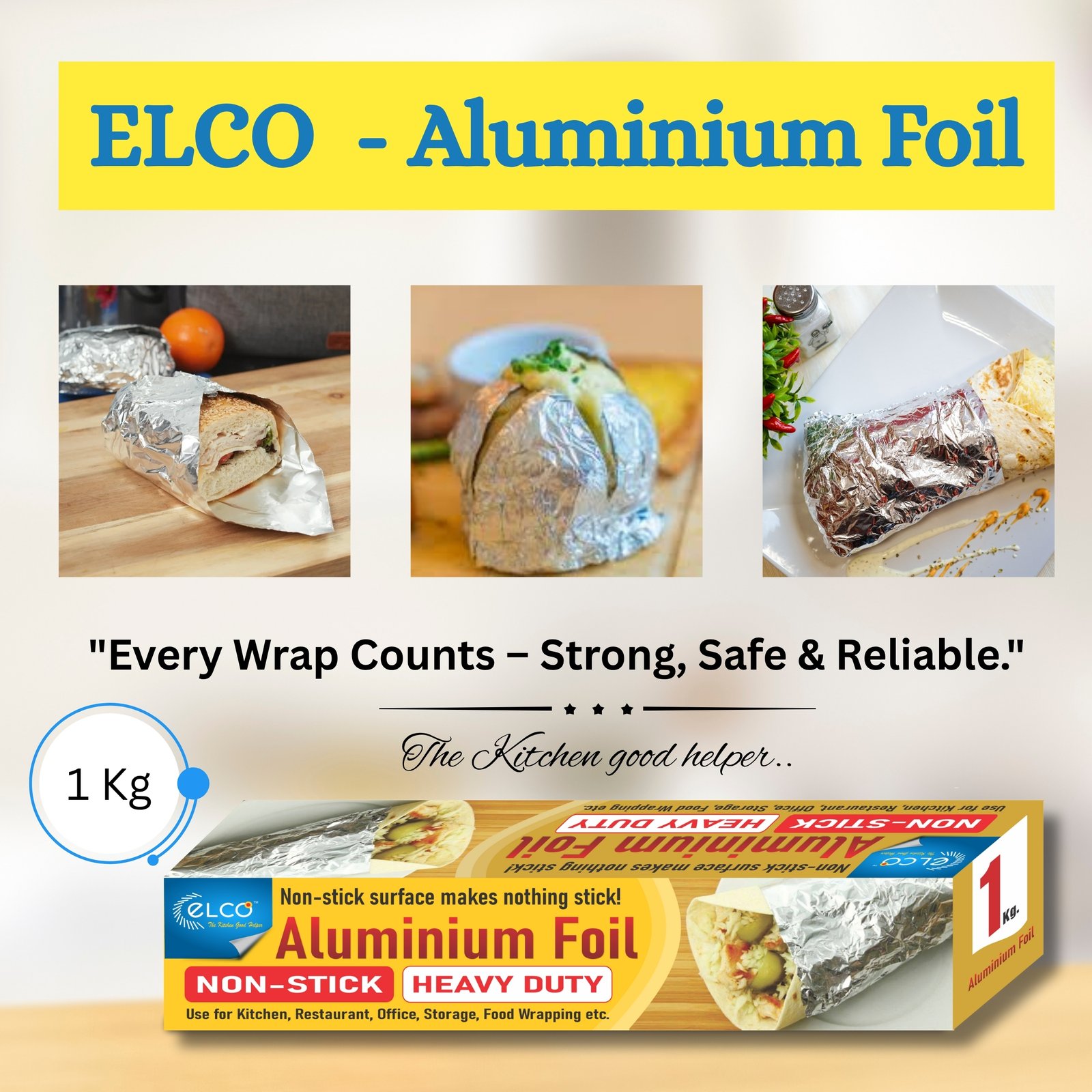 ELCO Aluminium Foil keeps your food hot, fresh, and full of flavour. Made with premium-quality, food-grade aluminium, it’s strong, tear-resistant, and perfect for wrapping, baking, grilling, or storing. Whether at home or on-the-go, ELCO ensures hygiene, convenience, and freshness in every fold.